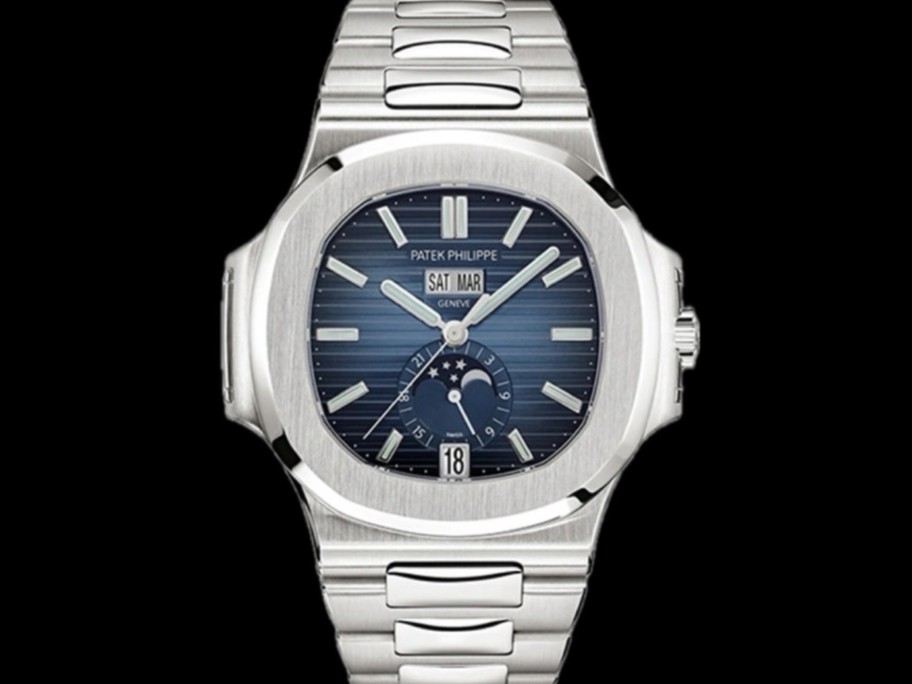 Patek Philippe 百達翡麗 Nautilus 金鷹系列 5726/1A 不銹鋼材質 年曆錶 月相盈虧 水平橫紋浮雕藍色面盤
