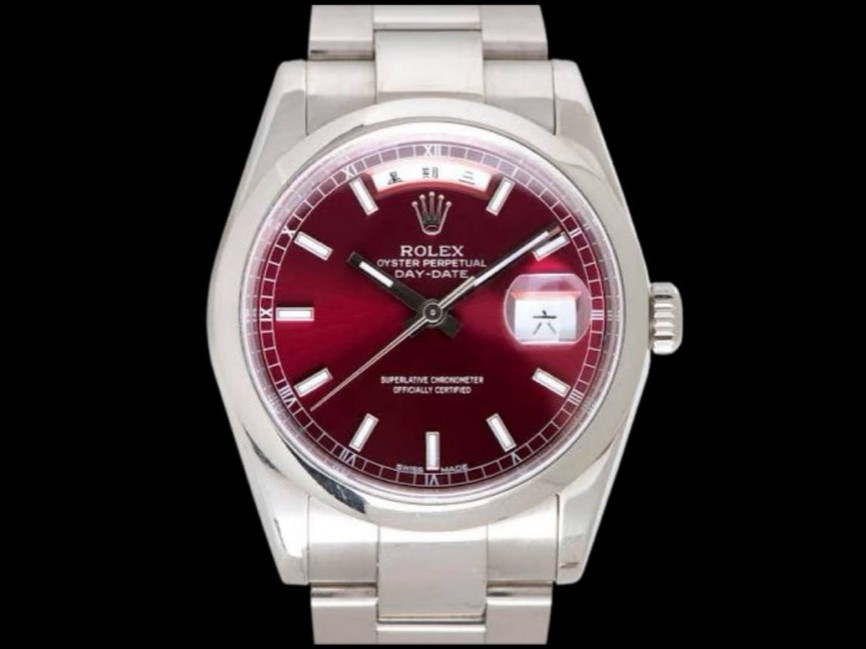 ROLEX 勞力士 Oyster Perpetual Day-Date 36 蠔式 星期日期型 118209 18k白金 櫻桃紅面盤