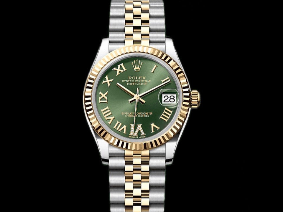 ROLEX 勞力士 DateJust 31 278273 黃K金 半金 五珠紀念型錶帶 橄欖綠色面盤