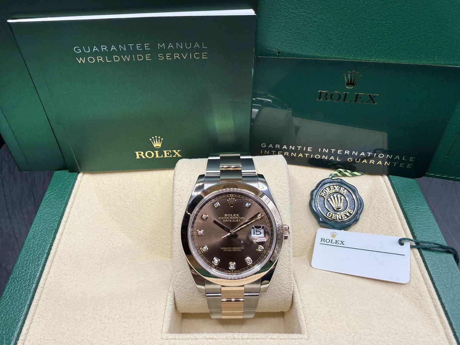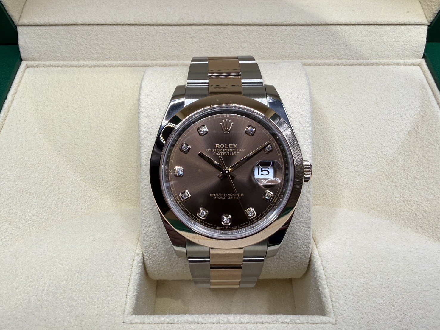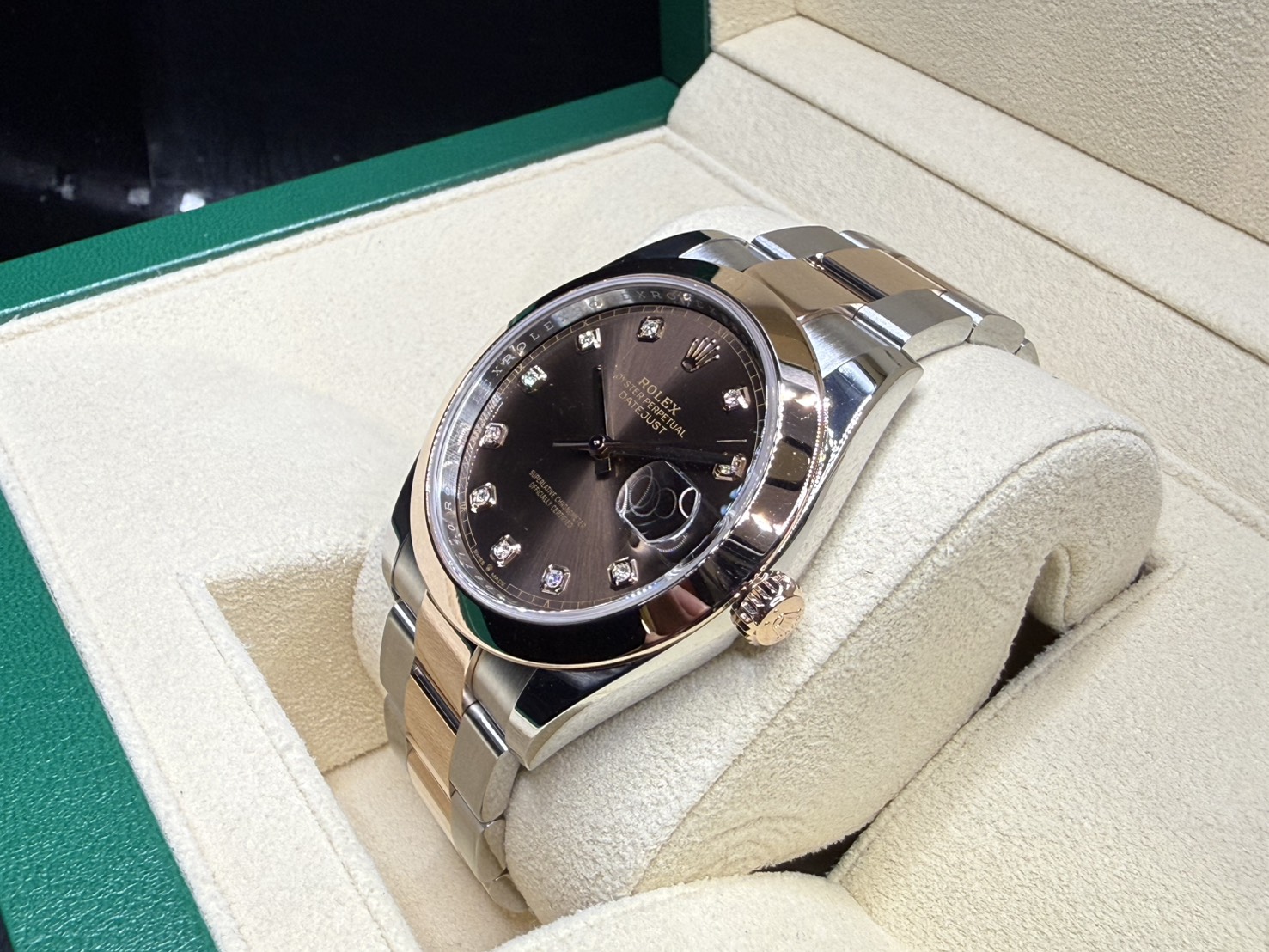 ROLEX 勞力士 DATEJUST41 126301 蠔式日誌型 玫瑰半金款 巧克力面 鑽石刻 2024年