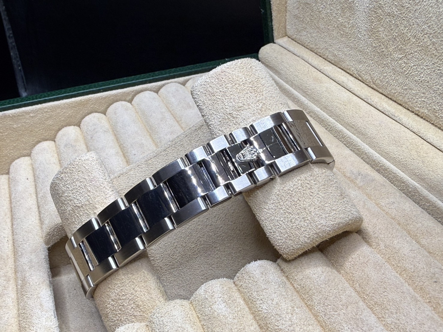 18K白金材質錶殼 / 錶鍊帶及折疊帶扣 / 旋入式錶冠 / 柱狀時標 / 蠔式錶圈 / 藍寶石水晶玻璃鏡面 |