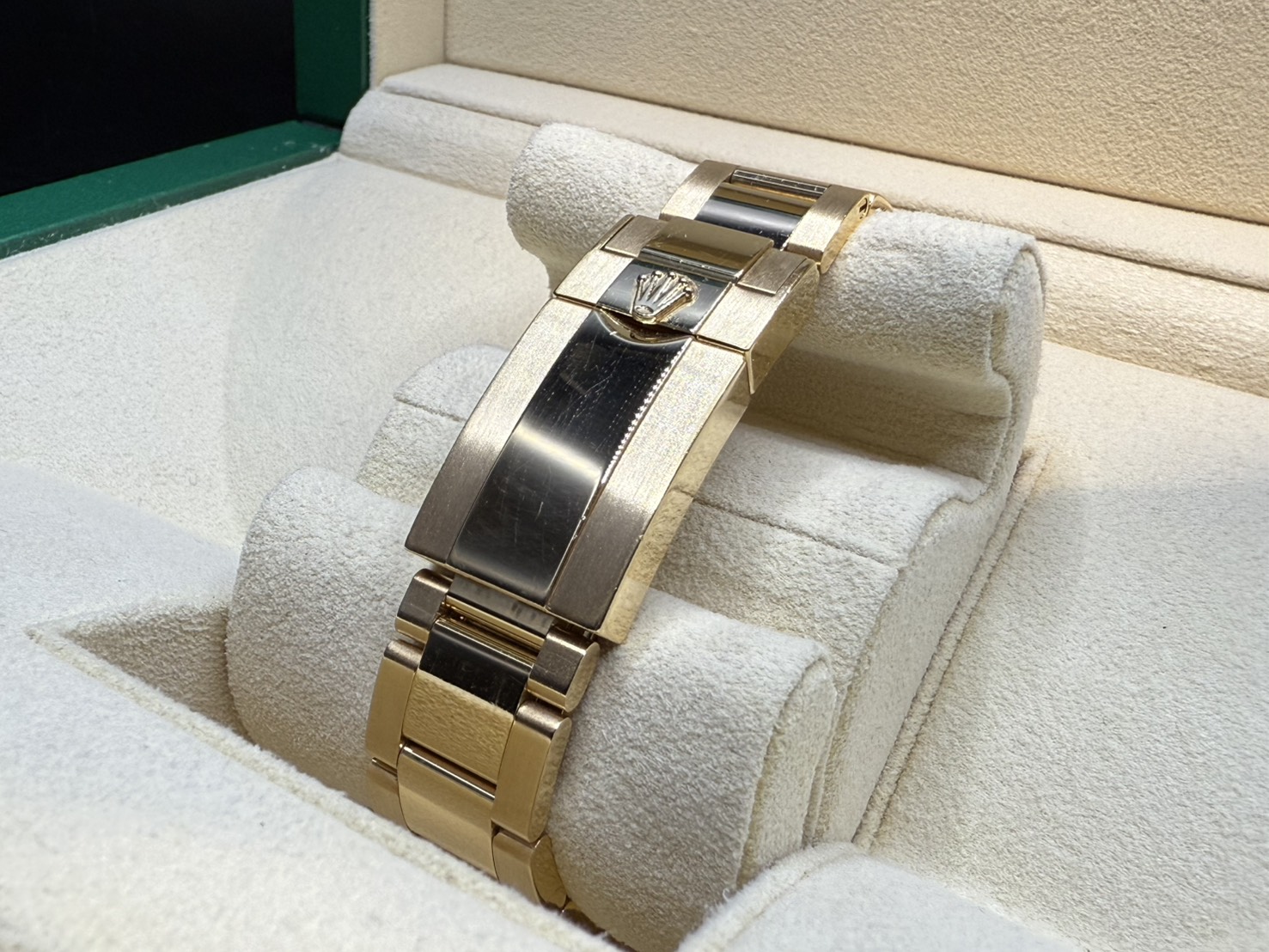 18K黃金錶殼、錶帶、摺疊扣、旋入式錶冠、視距儀刻度錶框 / 最新款黑色八鑽面盤 / 夜光指針 / 藍寶石水晶玻璃 / 防偽內圈